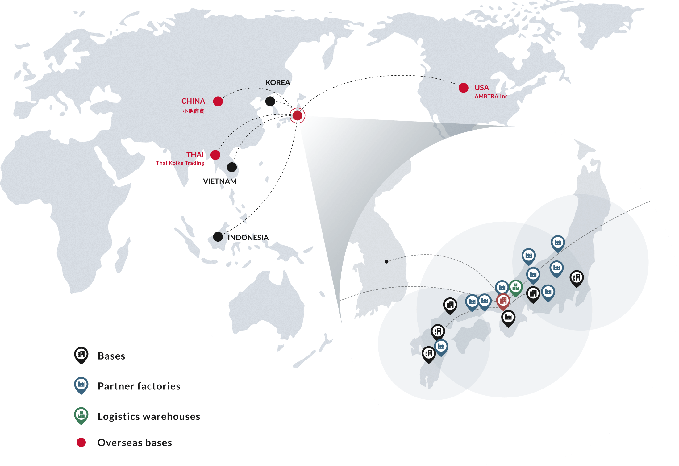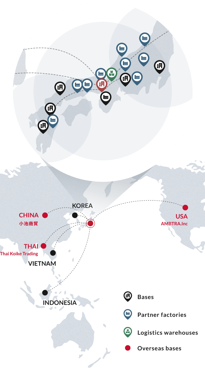 We have an extensive network of partner factories not only throughout Japan, but also overseas.